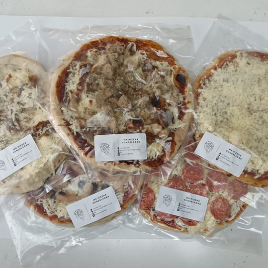 Pack 20 Pizzas Congeladas individuales 23 cm sabores especiales.
